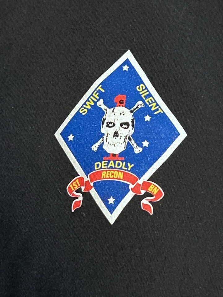 Vintage 1st Recon Battalion Swift Silent Deadly Shirt XL U S M C Hunting Permit Tee