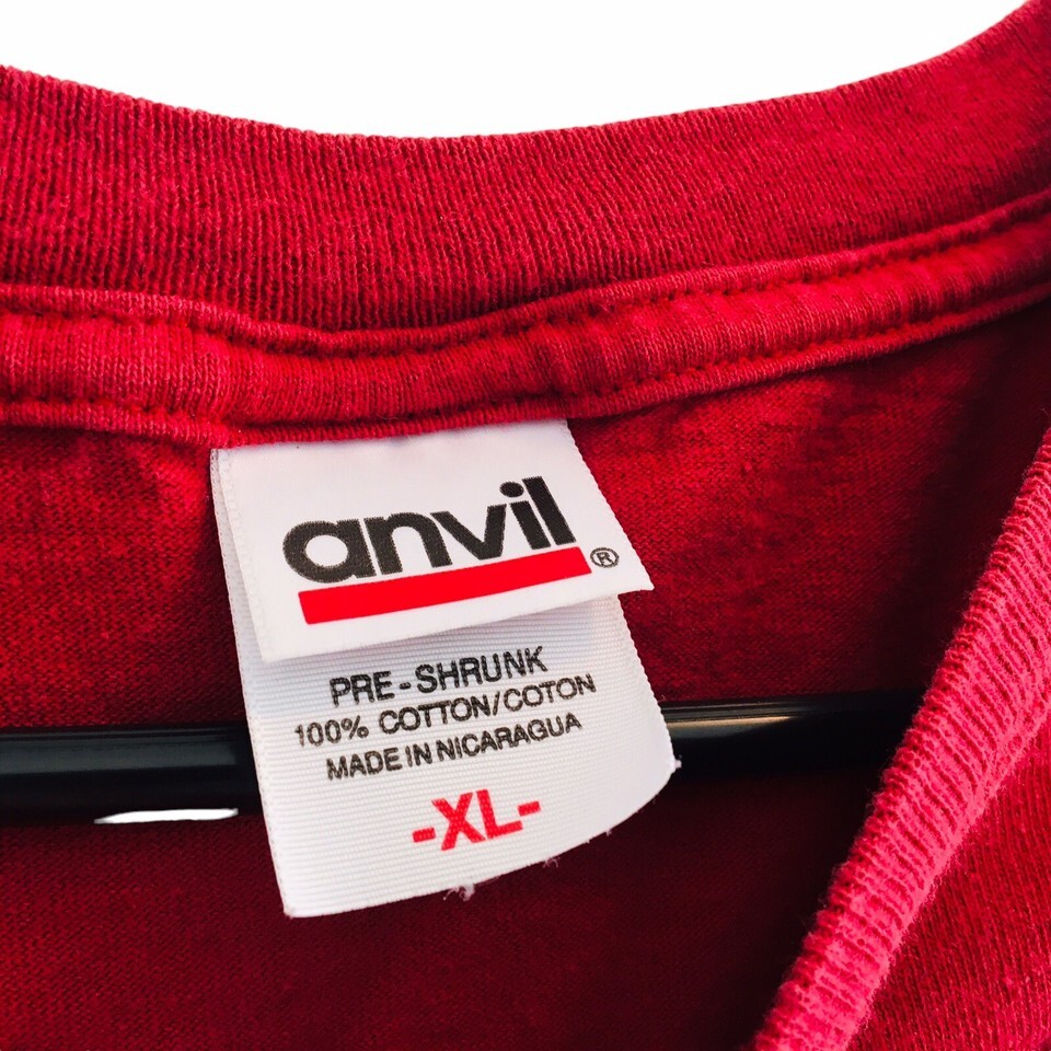This is a vintage Anvil t-shirt from the mid-2000s (2007) featuring a double-sided graphic of NHRA drag racing. The shirt is red and made of cotton with short sleeves and a regular fit in size XL. Auto Club Finals 2007!