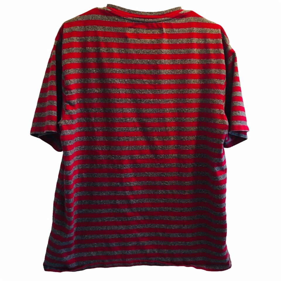 Vintage Y2K Guess Los Angeles Men's Red & Gray Striped T-Shirt Medium