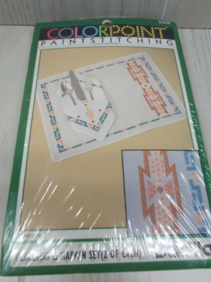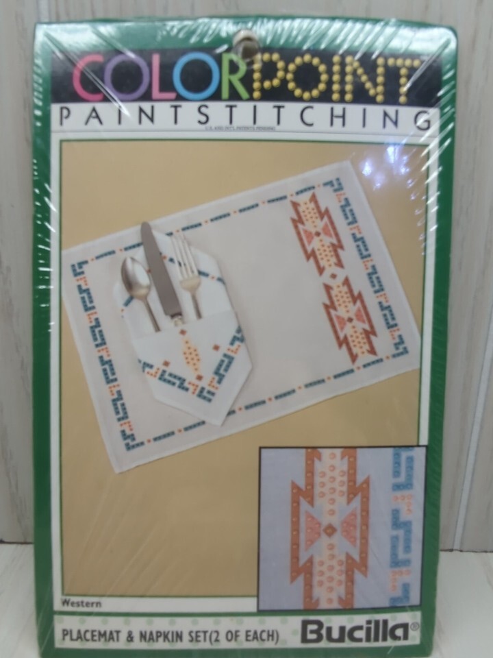 Bucilla Western Colorpoint Paint Stitching Kit Placemat Napkin set
