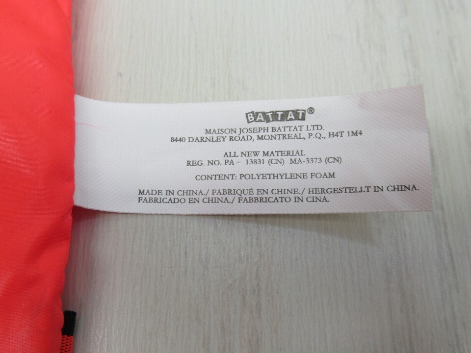 “gently used. life jacket has some faint spots” |