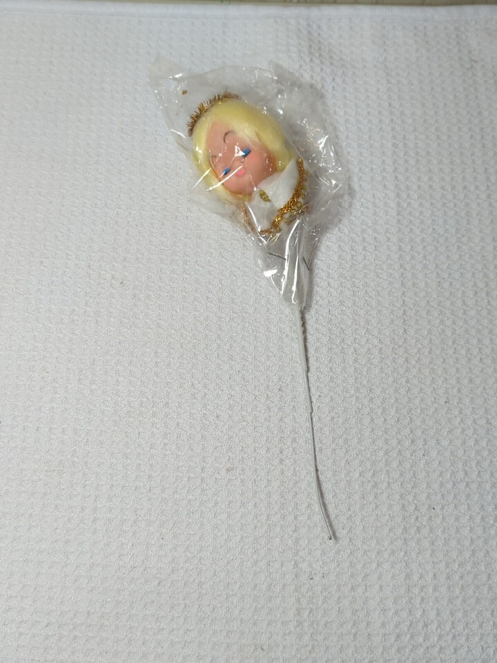 Vintage Angel Head Face Craft Pick Holiday Christmas Decor Painted Face Blonde