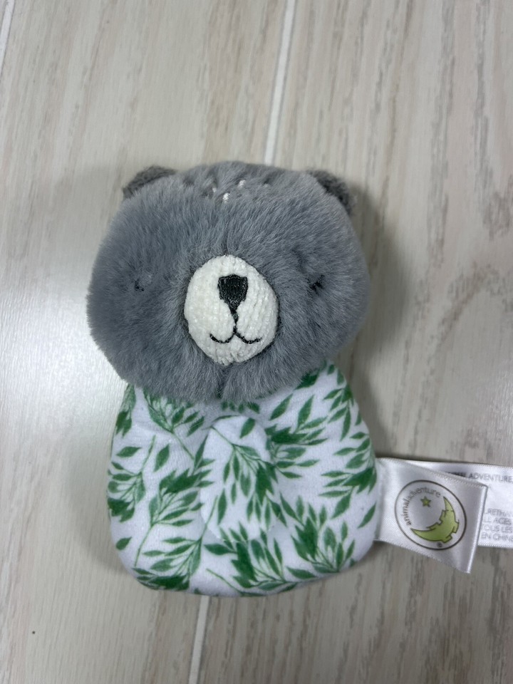 Animal Adventure small gray plush teddy bear gray rattle baby toy green leaves