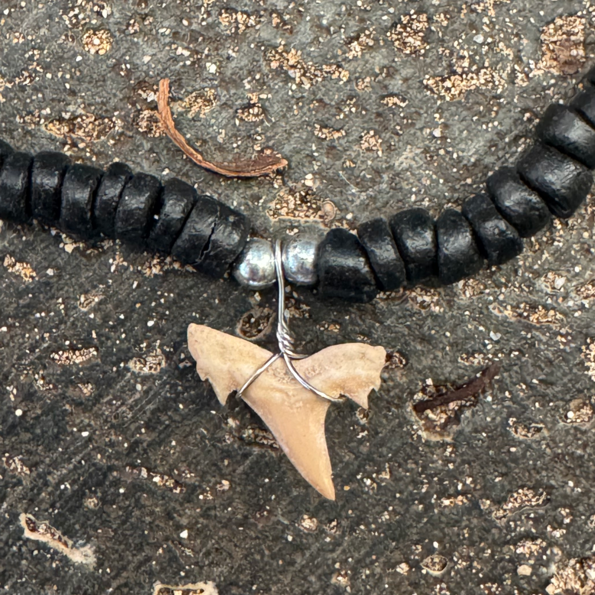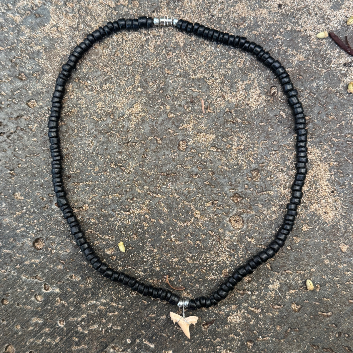 Shark Tooth Necklace – Natural Tooth on 18" Black Beaded Strand