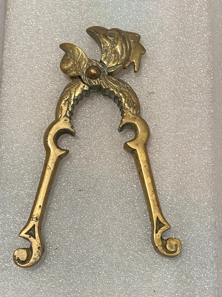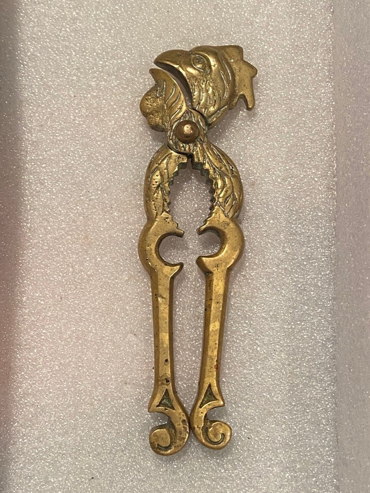 The nutcracker tool is pre-owned and has some discoloration. Solid joints that open and close with ease.