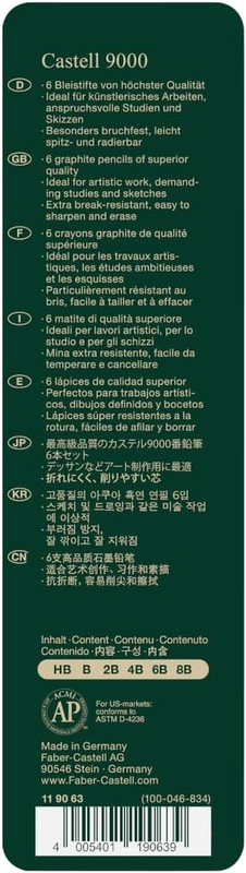 Available in 5 degree of hardness Including HB, 2B, 4B, 6B and 8B