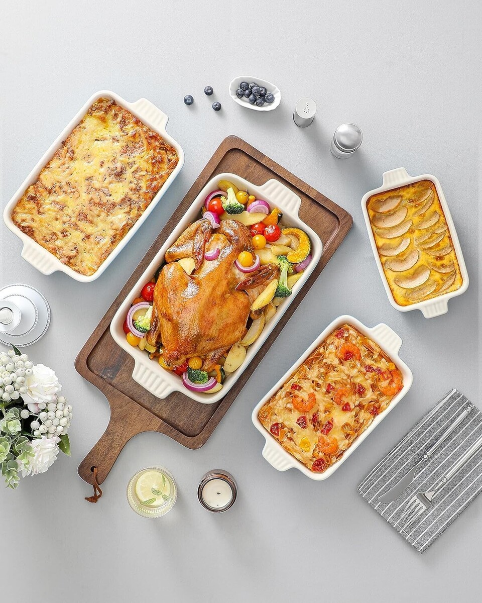 Premium Porcelain Baking Dishes Set of 4 - Versatile and Durable Rectangular ...