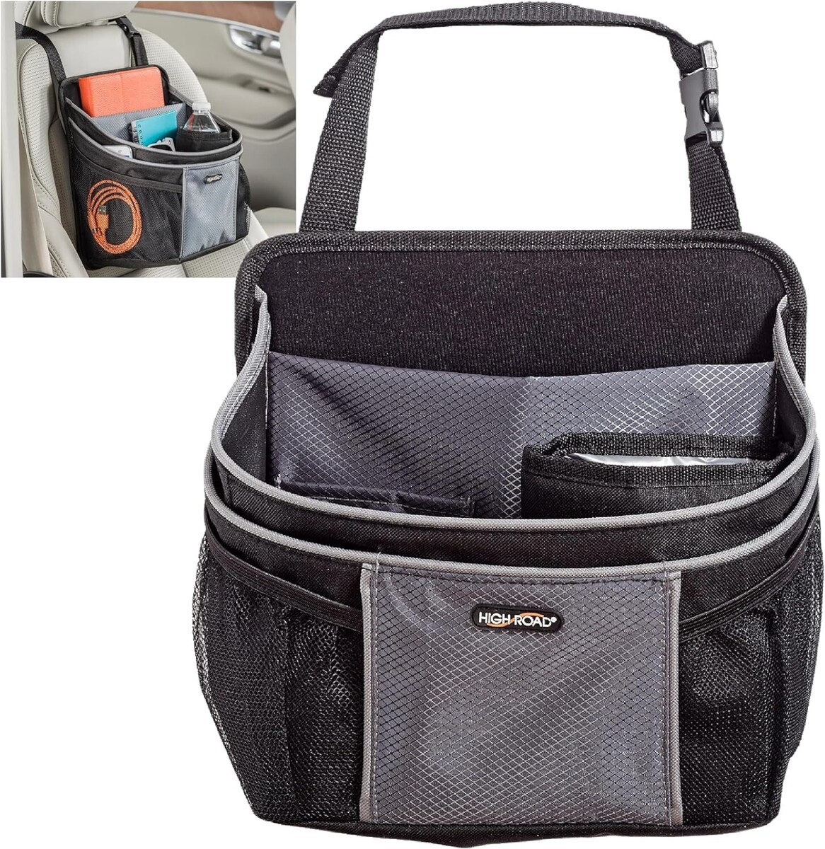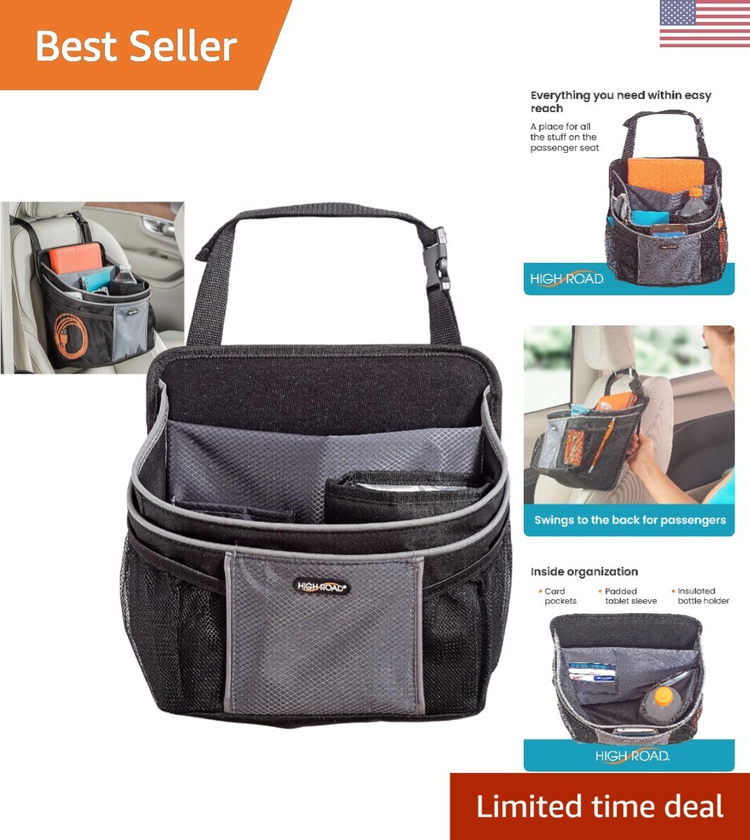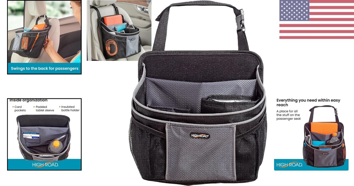 Multipurpose car organizer keeps car clutter off the seat and within easy reach
