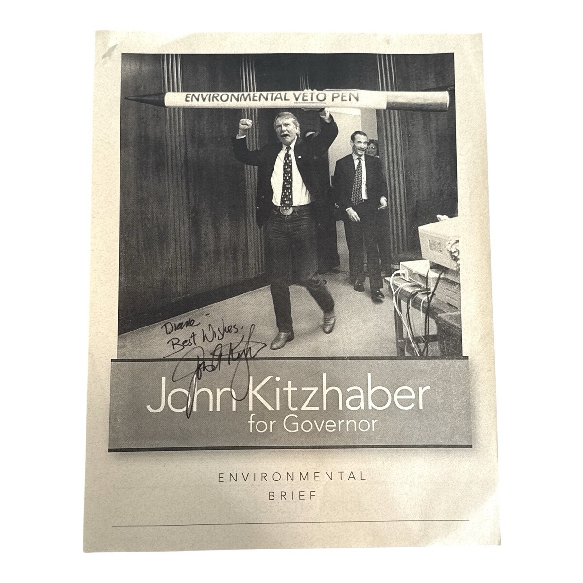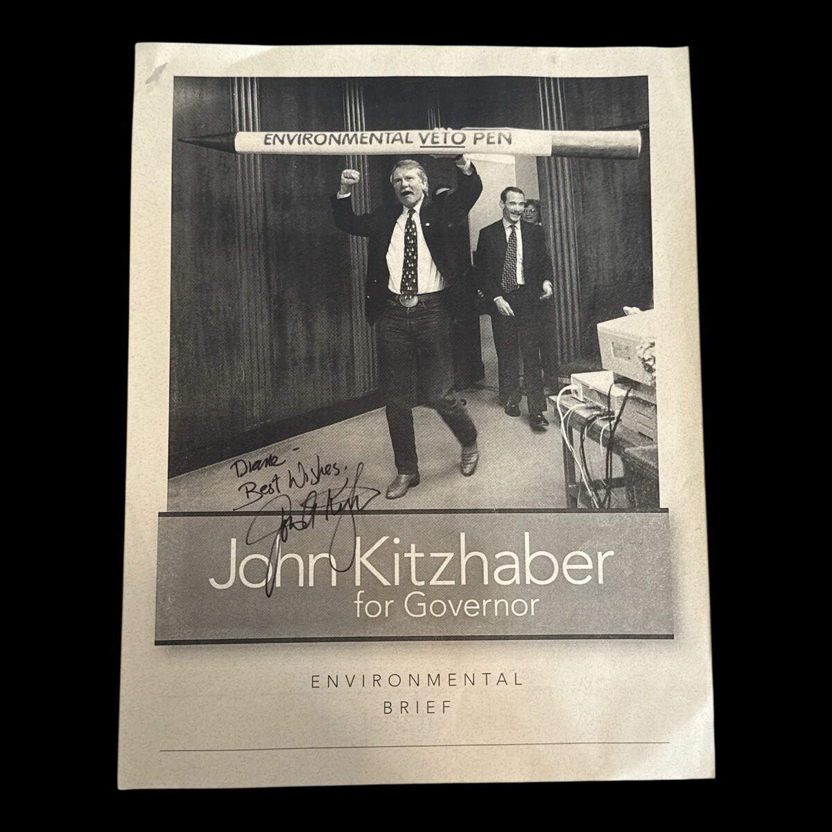 Oregon Governor John Kitzhaber LARGE Environmental Veto PEN Autographed Funny