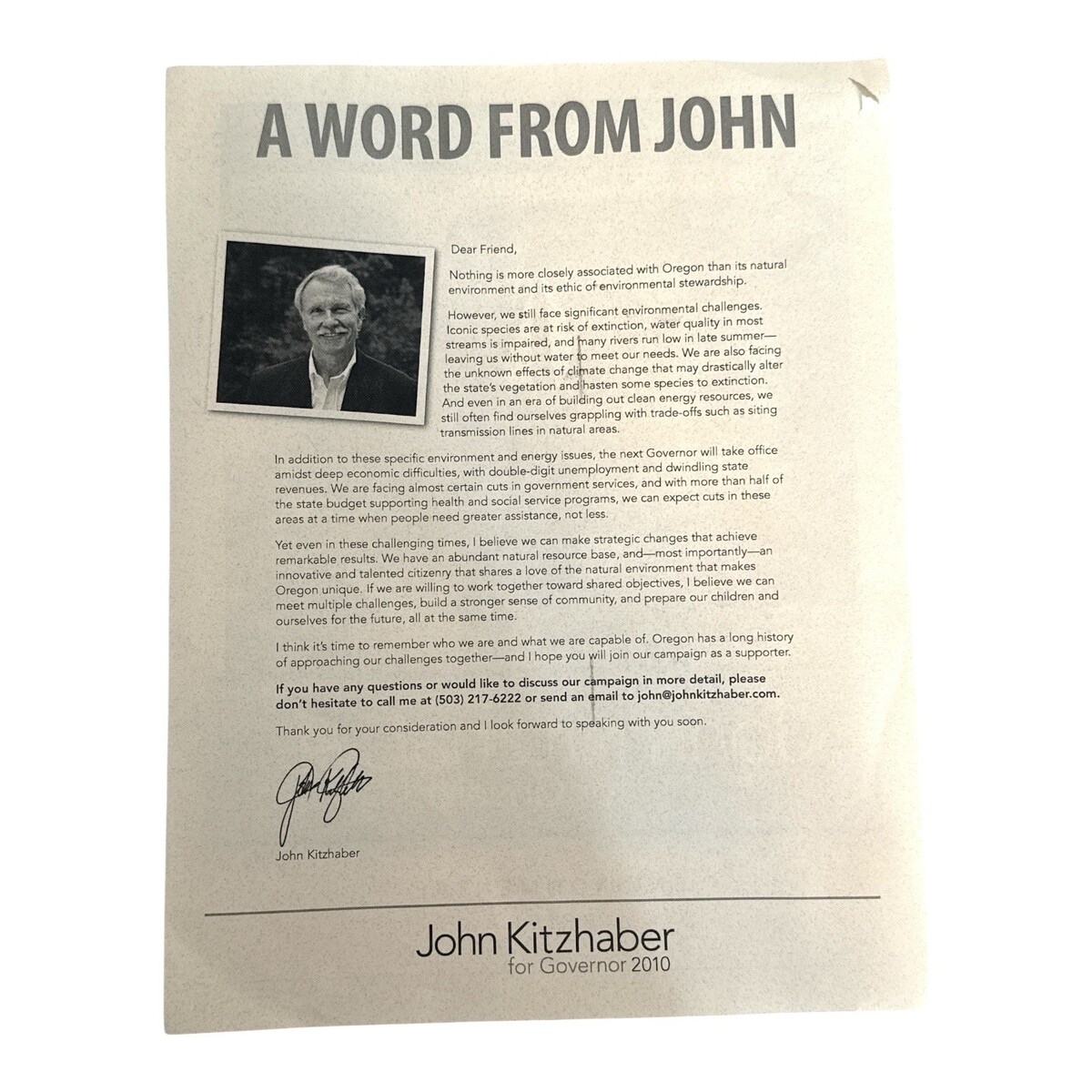 This flyer photo really shows John Kitzhabers personality and humor! He was such a fun governor. A very loved and missed governor of Oregon.