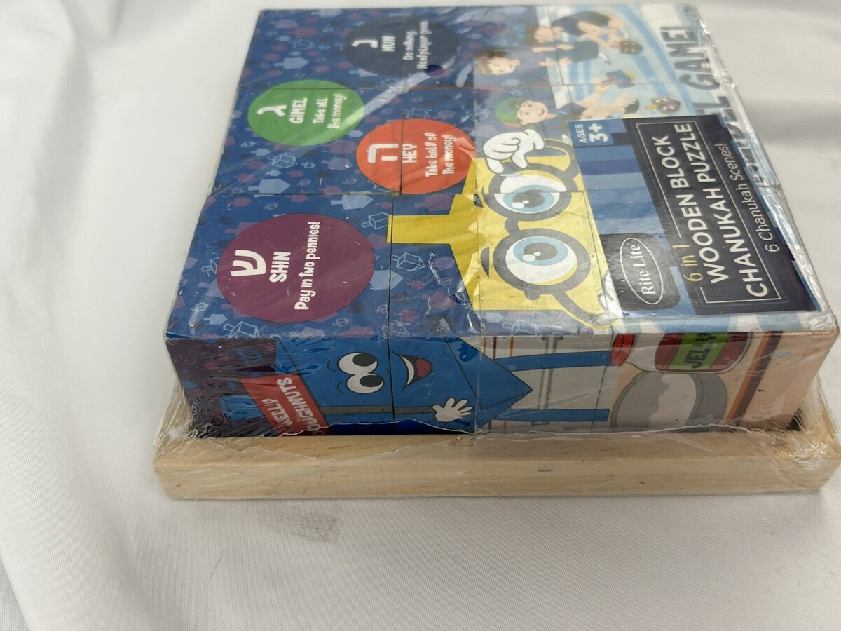 Rite Lite 6-in-1 Wooden Block Chanukah Puzzle Dreidel Game Ages 3+ New Sealed
