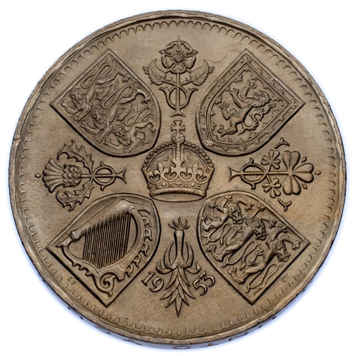 (2) 1953 Great Britain Crown, Uncirculated (UNC), KM#894, Copper-Nickel (5,963,000)