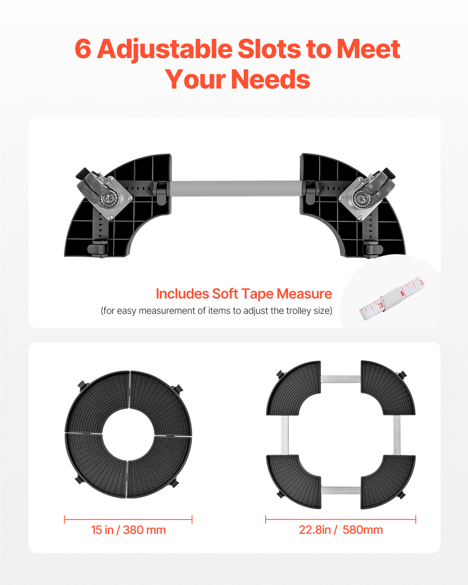 VEVOR Trash Can Dolly 440lbs Weight Capacity, 15-22.8 in Adjustable, Black