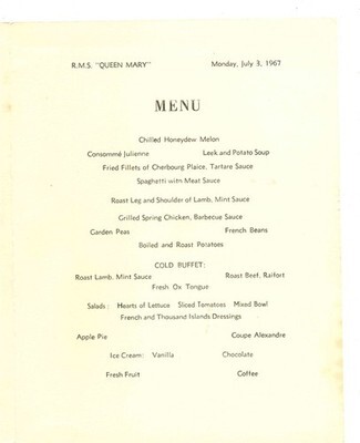 Cunard Line Dinner Menu RMS Queen Mary 1967 and similar items