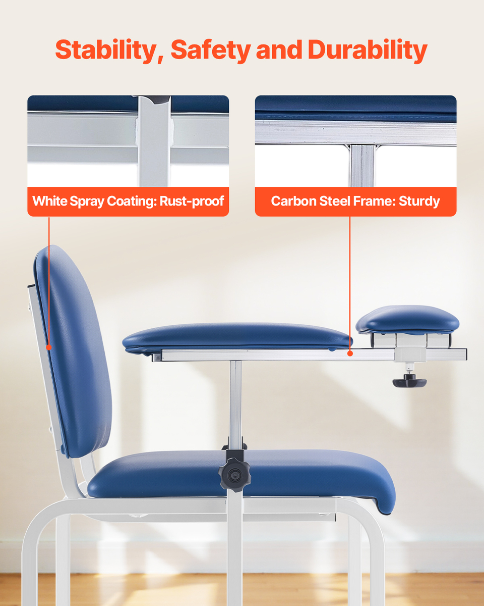 Sturdy Heavy-Duty Frame: Built with a high-strength carbon steel frame and coated with a rust-resistant white powder finish, this phlebotomy chair can support up to 400 pounds, providing stable and reliable use for individuals of various body types