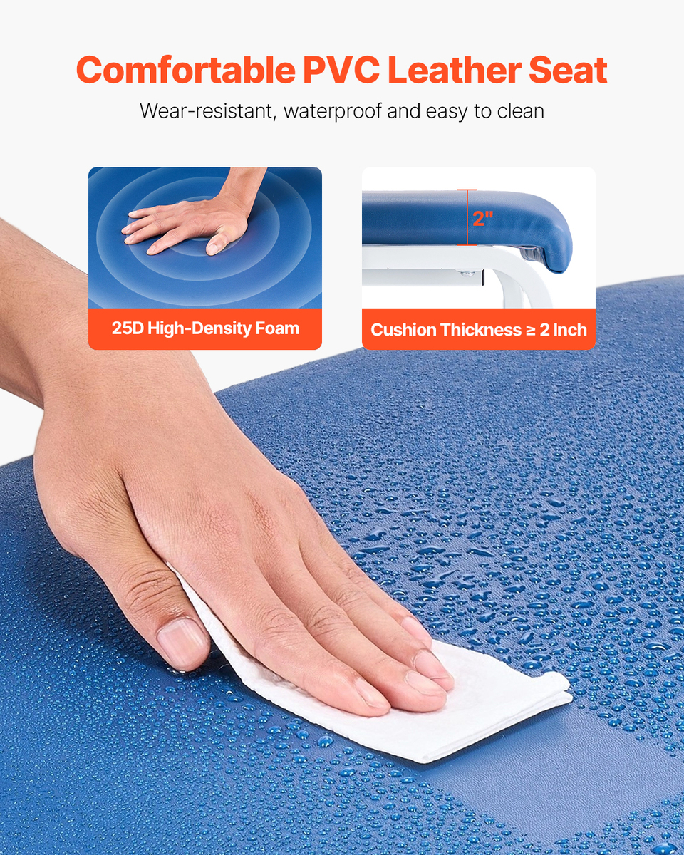 Enhanced Comfort: Our medical phlebotomy chair 's spacious seat and backrest are made with soft PVC leather and 25D high-density foam, offering exceptional comfort and support. And the 2-inch thickened cushion helps reduce pressure points, ensuring a more comfortable experience during extended sitting