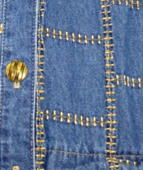 VTG Saint Germain Womens Denim Vest XL Button Front Embroidered Stitching Pocket
