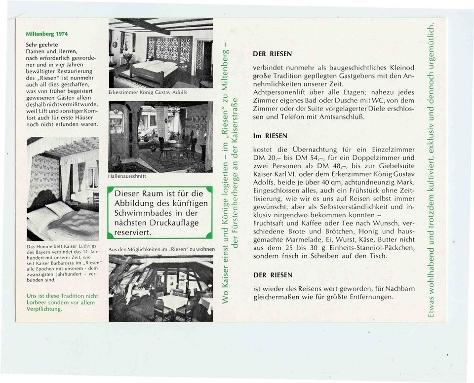 IHR Hotel Riefen Advertising Card Miltenberg / Main Germany 1970's