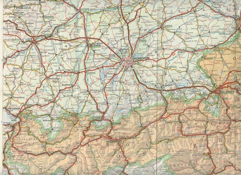 A fold out map of Austria . Published in 1962 by Creditanstalt Bankverein. Opens to about 26 1/2" x 12 3/4". On one side is a large color road map of Austria and on the other side are smaller inset maps of the larger cities in Austria and, mileage chart. lists of hotels Alpine Passes list of Spas and more.