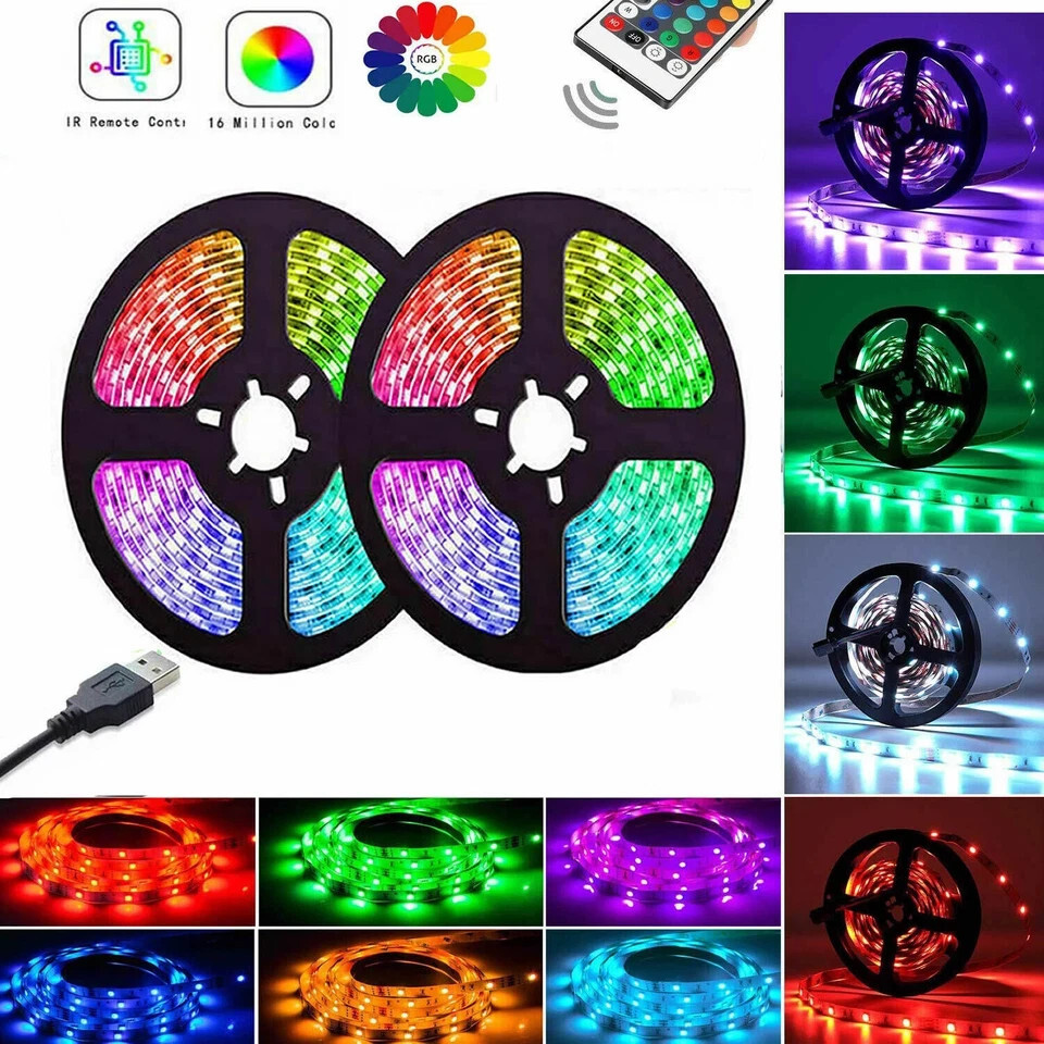 1-20m LED Strip Lights 5050 RGB Colour Changing Tape Cabinet Kitchen TV Lighting