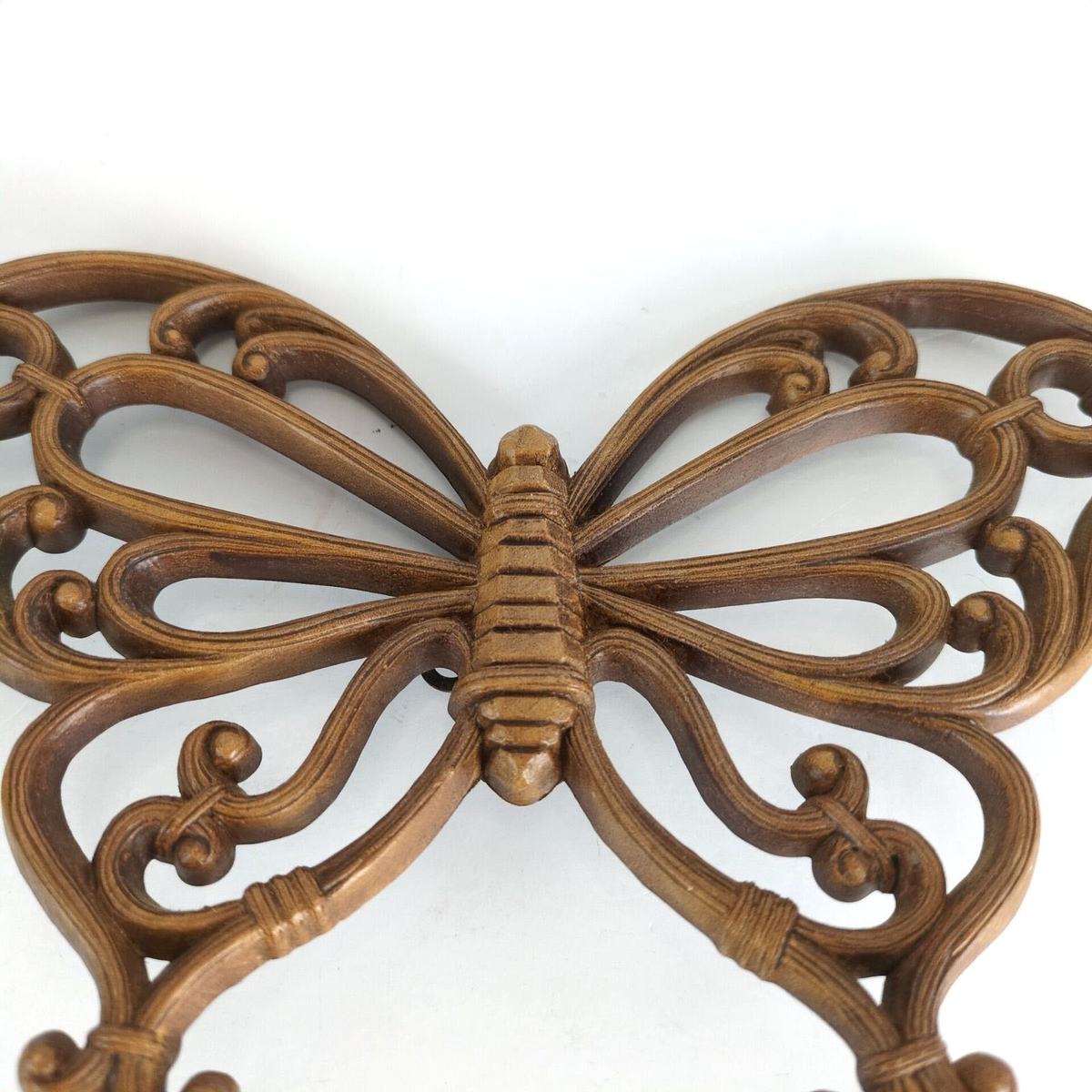 Vintage 1970s Homco Faux Wood Butterfly Wall Art Decor