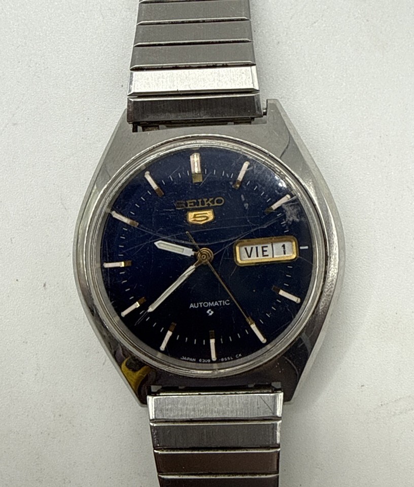 AUTOMATIC VINTAGE SEIKO 5 6309 855L CK JAPAN MENS WATCH FOR PARTS - WORKS!