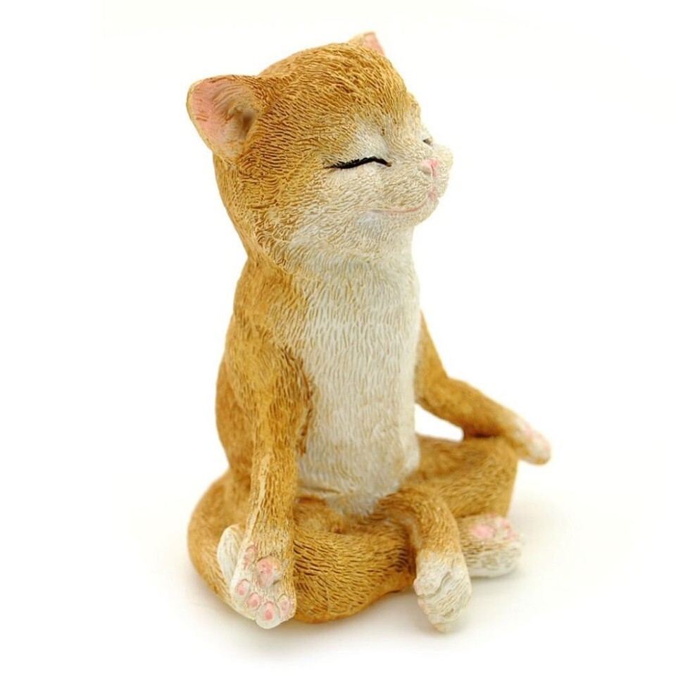 CUTE MEDITATING CAT STATUE 3.75" Yoga Lotus Pose Zen Kitty Resin Figurine NEW
