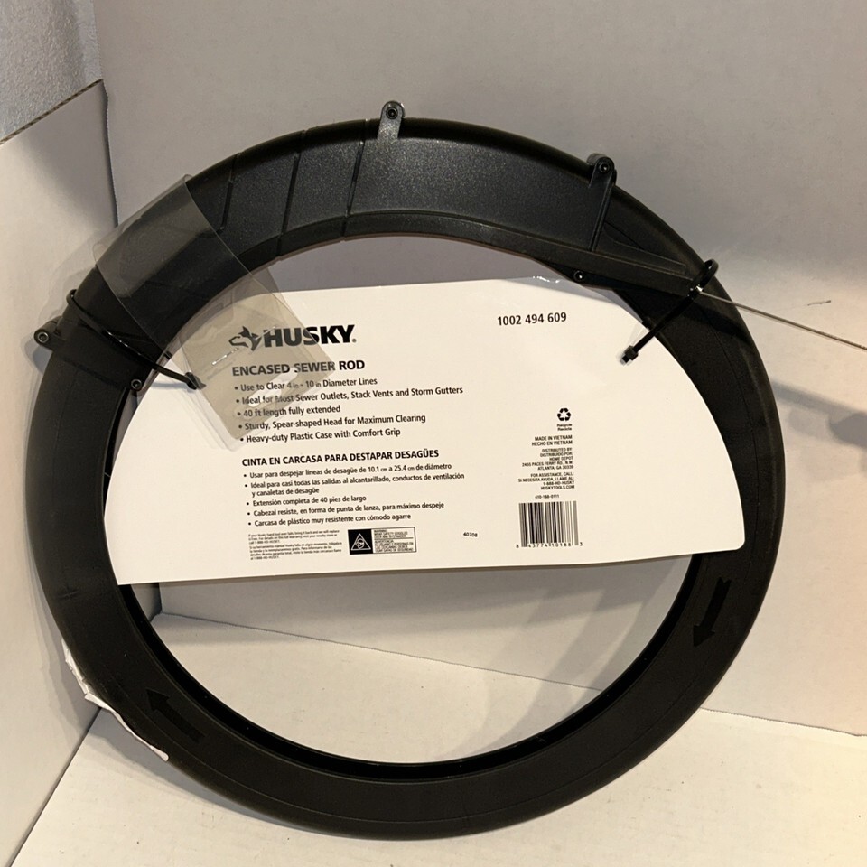 Husky Encased Sewer Rod Drain Snake 40 foot New Lifetime Warranty. Condition is New. Shipped with USPS Ground Advantage.