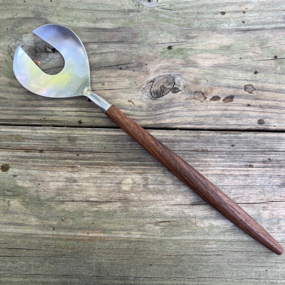 Reed Barton Stainless Steel Wood Handle Salad Server Vintage MCM