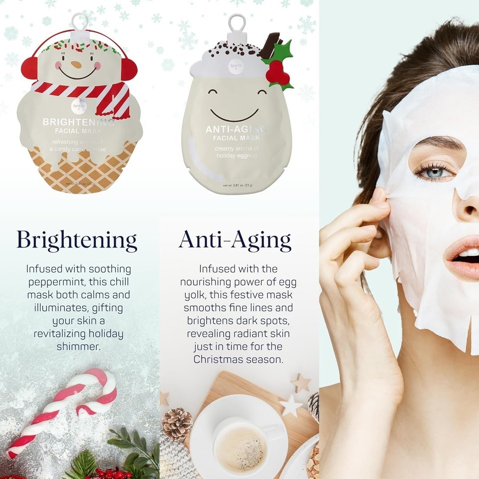 Give the gift of seasonal self-care with this 12 Pack Holiday Treats Christmas Face Mask Bundle. Featuring premium Korean sheet masks, this festive skincare set includes four winter-ready formulas designed to hydrate, brighten, firm, nourish, and soothe dry or cold-weather skin. Scents like peppermint and vanilla add a cozy holiday touch, while ingredients such as collagen, milk essence, and shea butter offer a rejuvenating spa-like experience at home.
