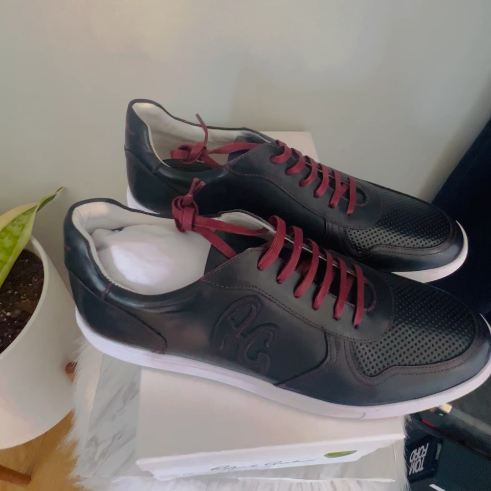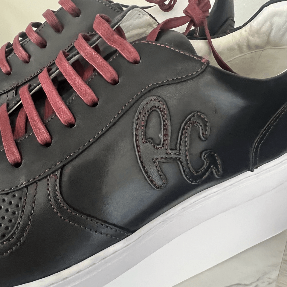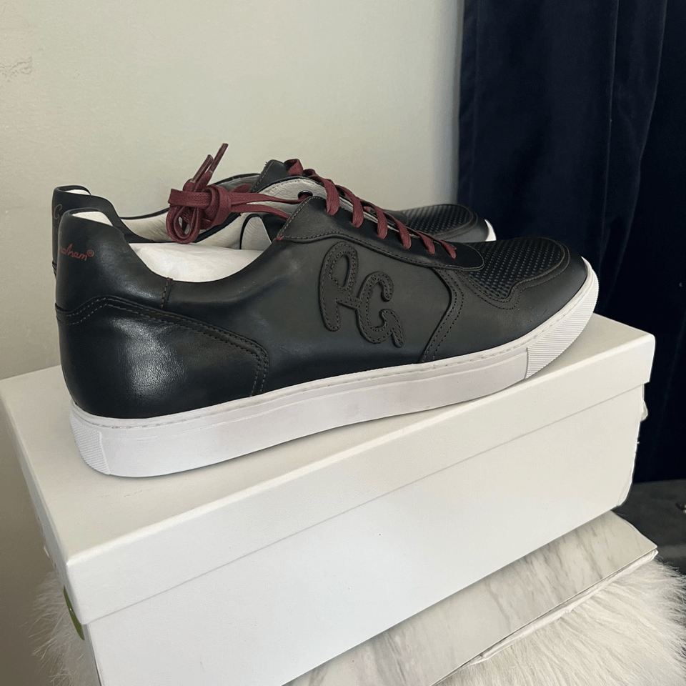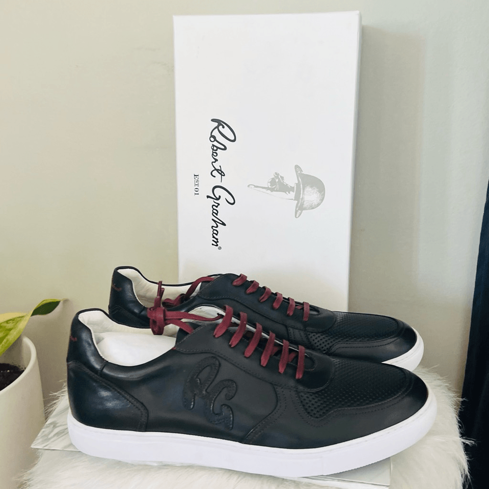 ROBERT GRAHAM Barrelman Leather Sneaker, Designer Black/Red Laces Size 11.5, NWT