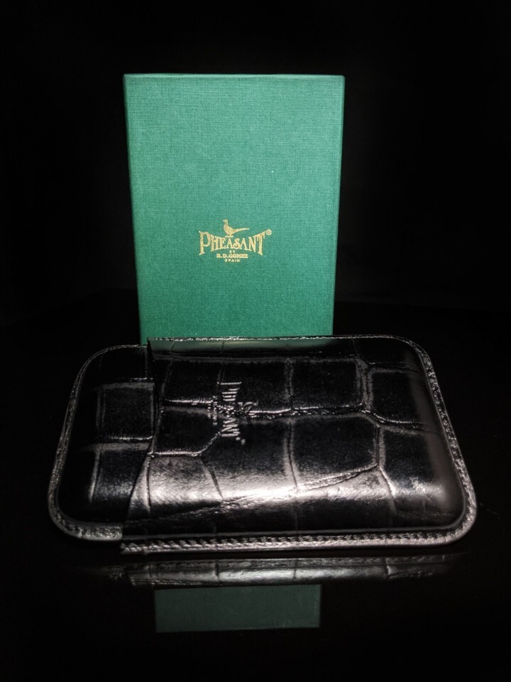 This is a new Pheasant Black Leather Cigar Carrying case. Made in Spain. Comes in the original box. We ship Worldwide fully insured.