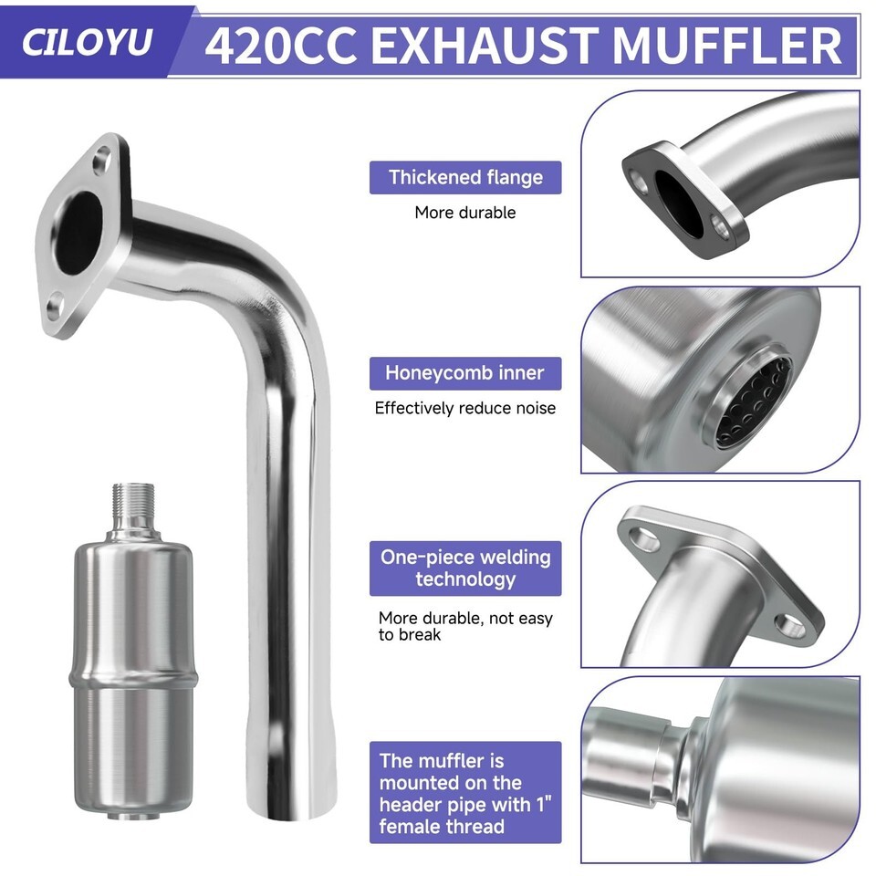 Improved 420cc Exhaust Muffler: The improved silencer and exhaust use excellent welding technology to make the mini bike exhaust muffler more solid, solving the problem of silencer breakage during the ride to a great extent