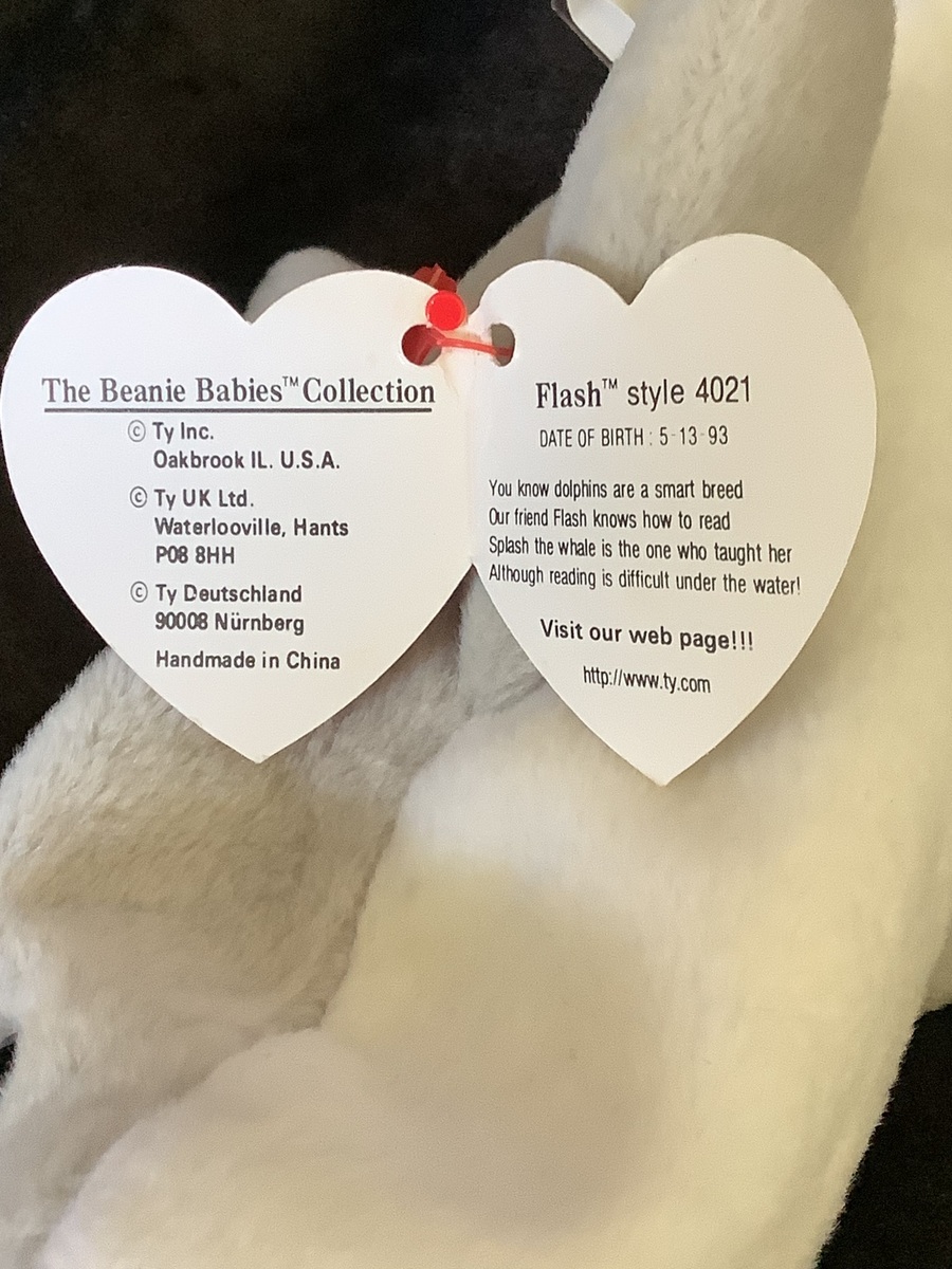 1) FLASH # 4021 --- 1993 --- 1 of a Kind Distinctive Limited Production / Invaluable Dual U.S. Factory / Canadian Tush Tags written in English and French ( Very Scarce ) --- Factory Oddities / Unique Features ---PVC Pellets 1st Edition --- Multiple Tag Errors --- Brand New --- Iconic Original --- MwmtMq