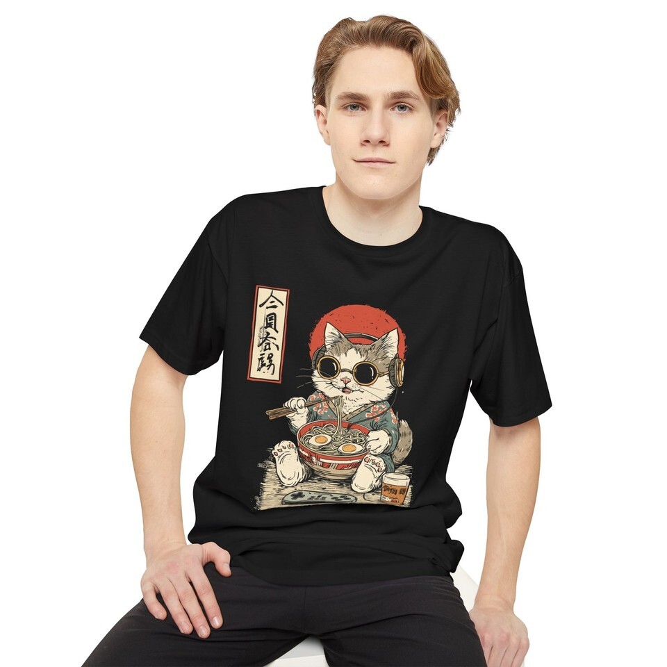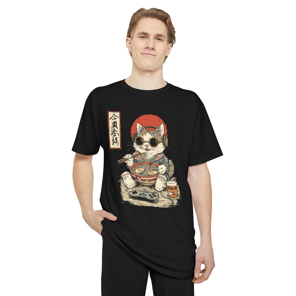 Kawaii Otaku Retro Japanese Gaming Anime Cat Eating Ramen Long Body Urban Tee