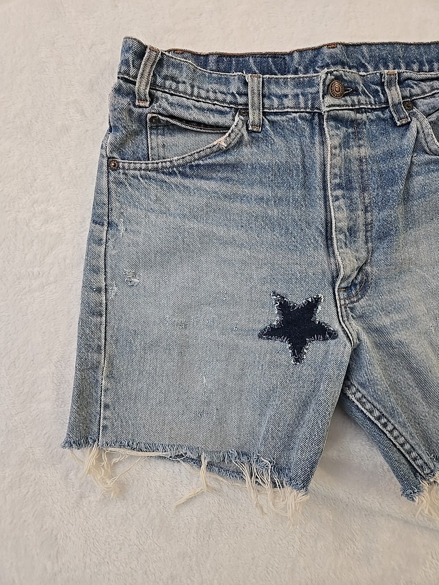 Levi's 517 Vtg 1991 Custom Cutoff Denim Shorts Jorts Mens Sz 32 Patchwork USA