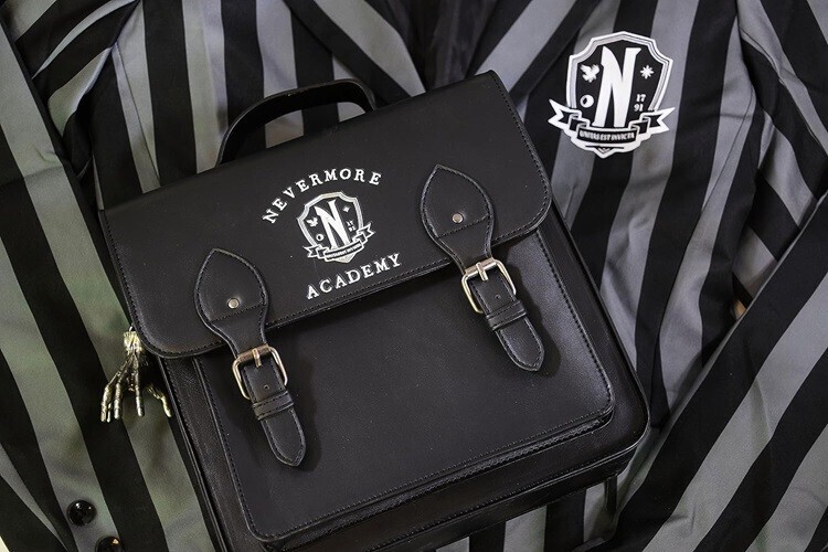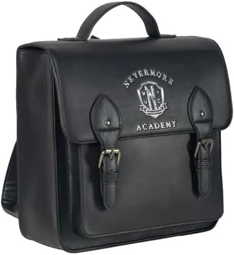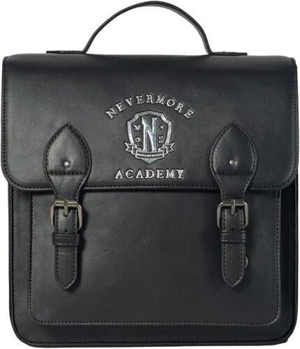 Are you an outcast, freak or monster? From Wednesday, this mini backpack features the Nevermore crest. Comes with adjustable straps, front pocket, interior drop pocket and a double snap-button closure.