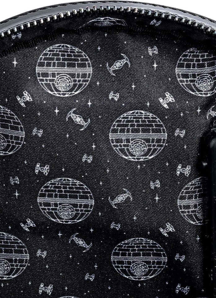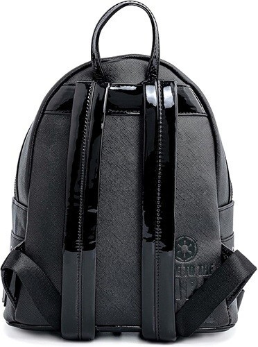 Show off your Star Wars fandom with this Darth Vader Light-Up Cosplay Mini-Backpack! It is made of faux leather with patent leather trim and features a top zipper closure and front zippered pocket, adjustable straps, matching themed lining, molded metal, embroidered, quilted, print debossed, printed, metal zipper charm, and light-up details! This mini-backpack approximately measures 9-inches wide x 10 1/2-inches tall x 4 1/2-inches deep. Ages 8 and up.