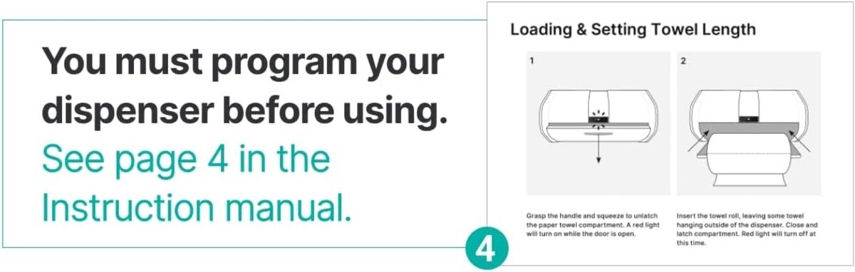 SET UP YOUR DISPENSER to dispense 1 full or oe sheet of paper towel for best results. If you need more sheets, simply keep your hand in front of the sensor to dispense additional sheets.