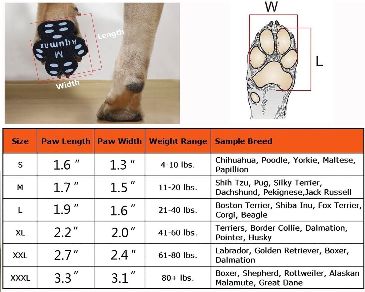 ?Warm Tips?1) Both oil and water are the most important factors that make the product non-stick. So if your dog's feet are just coated with Emollient Oil, it will not stick when you paste the paw pads on; 2) If you dog's paw size is between 2 sizes,please buy the larger you have two ways to stick the traction pads on dog feet.