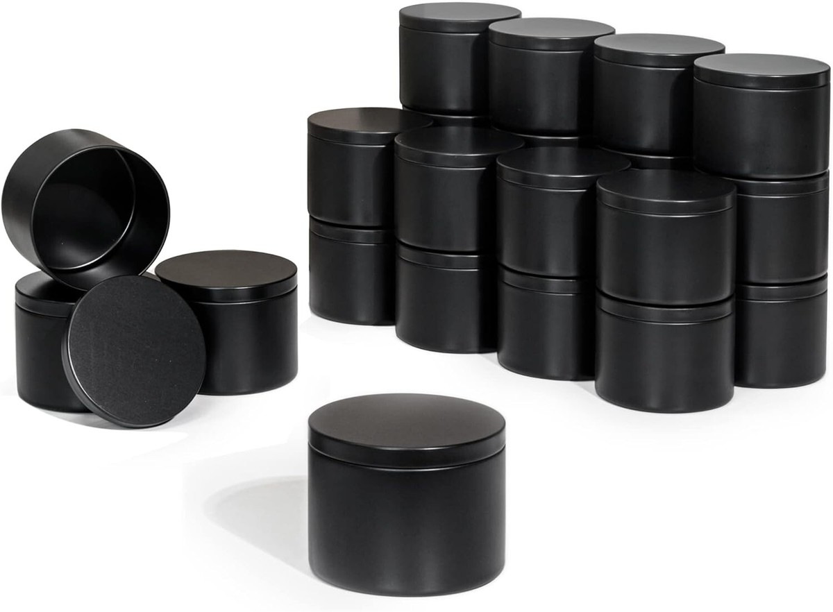 Candle Tins 8oz with Lids, 24 Pack Seamless Bulk Candle Containers for Candle Making Supplies Wholesale Empty Candle Jars - Black