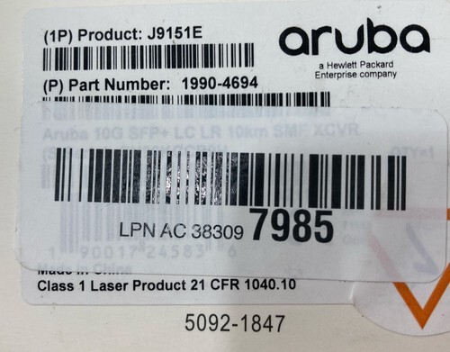 HPE Hewlett Packard Aruba J9151E SMF 10G SFP+LR Transceiver Laser module 1Yr War