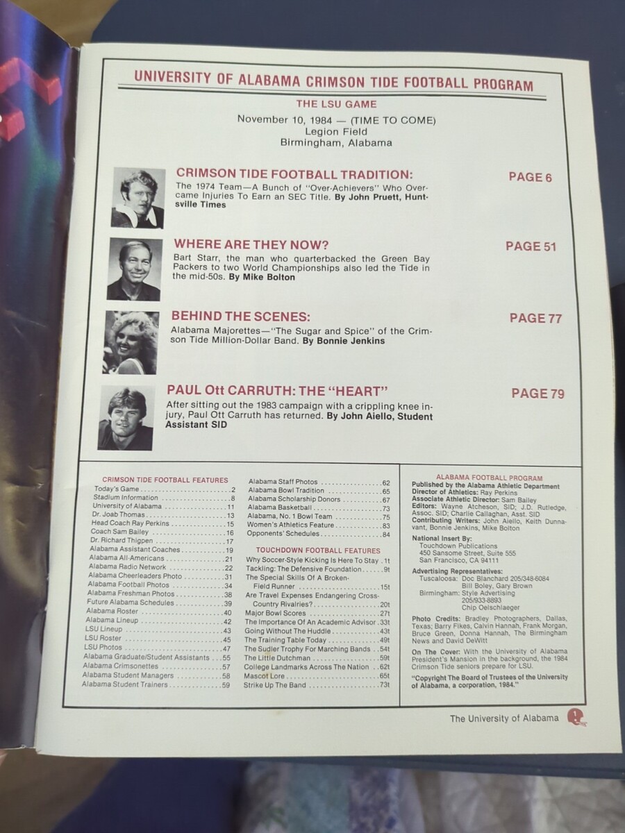 1984 Alabama - LSU Football Game Program 11.10.1984