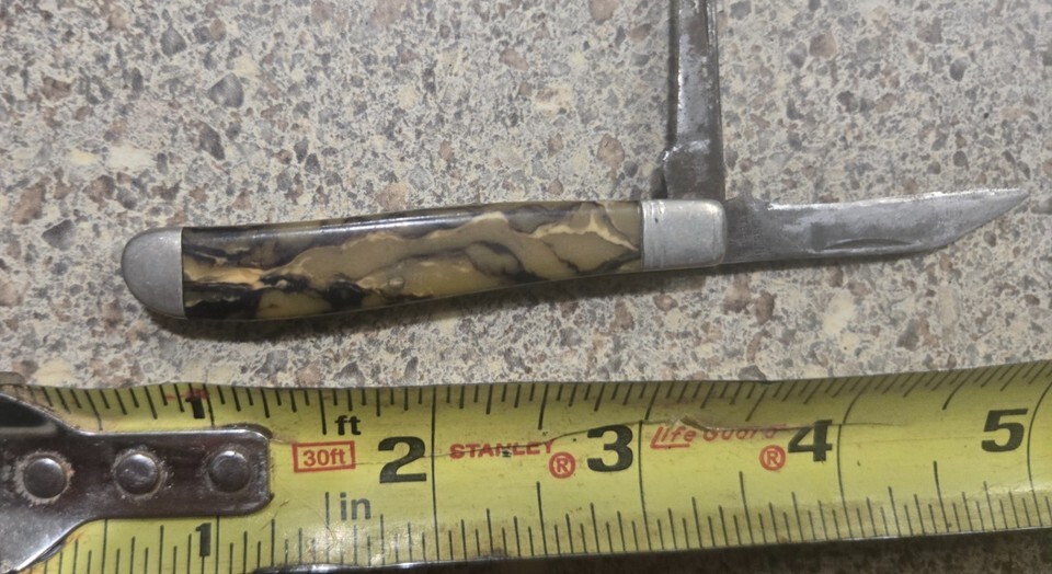 Vtg Carbon Steel Usa Marbled Plastic Pocket Knife