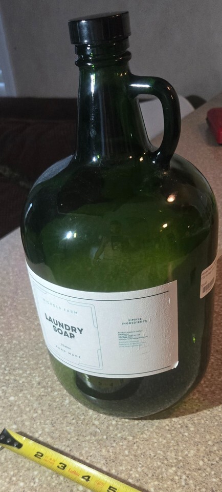 Nichols Farm 1 Gallon Laundry Soap Hand Made Green Glass Jug