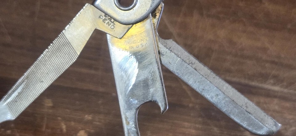 Vintage Trim Trio Folding Pocket Knife Multi Tool Usa Pat Pend.