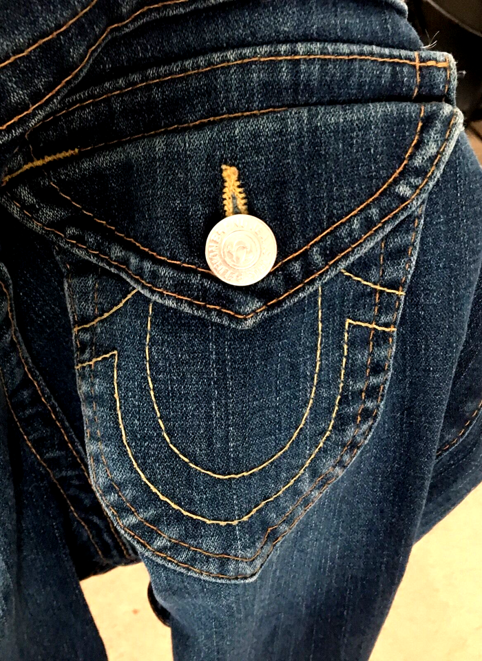 TRUE RELIGION BRAND JEANS SECTION JULIE USA IMPORTED FABRIC SZ W 32 L 35 RISE 9"