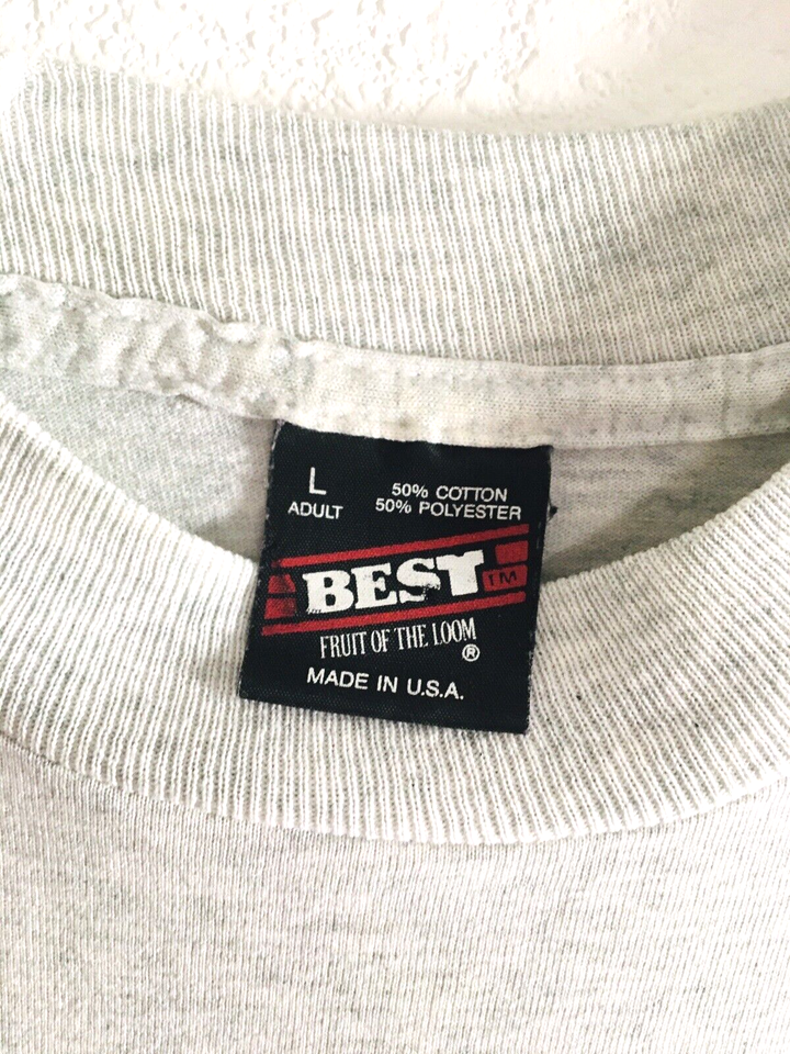 UNLV Runnin Rebels Tee Single Stitch 80s Vegas USA Large Best Tag Fruit of Loom The letters are raised and puffy on the shirt...very cool, the way they did back in the 90's.