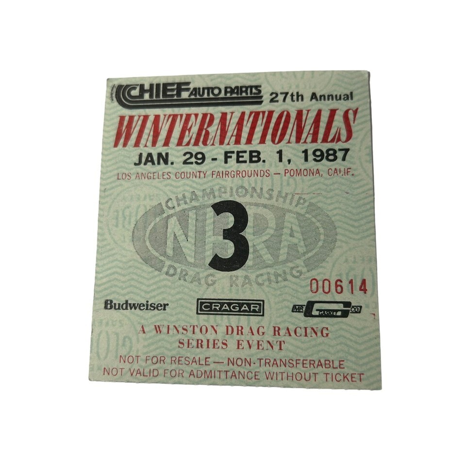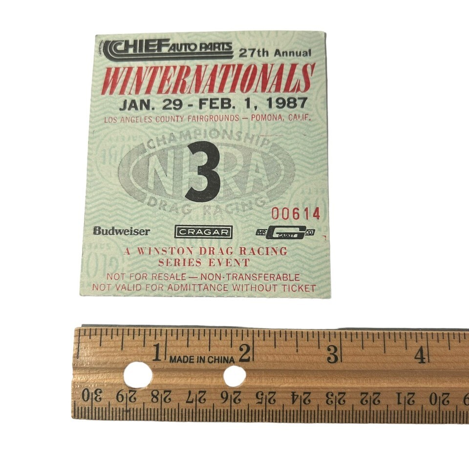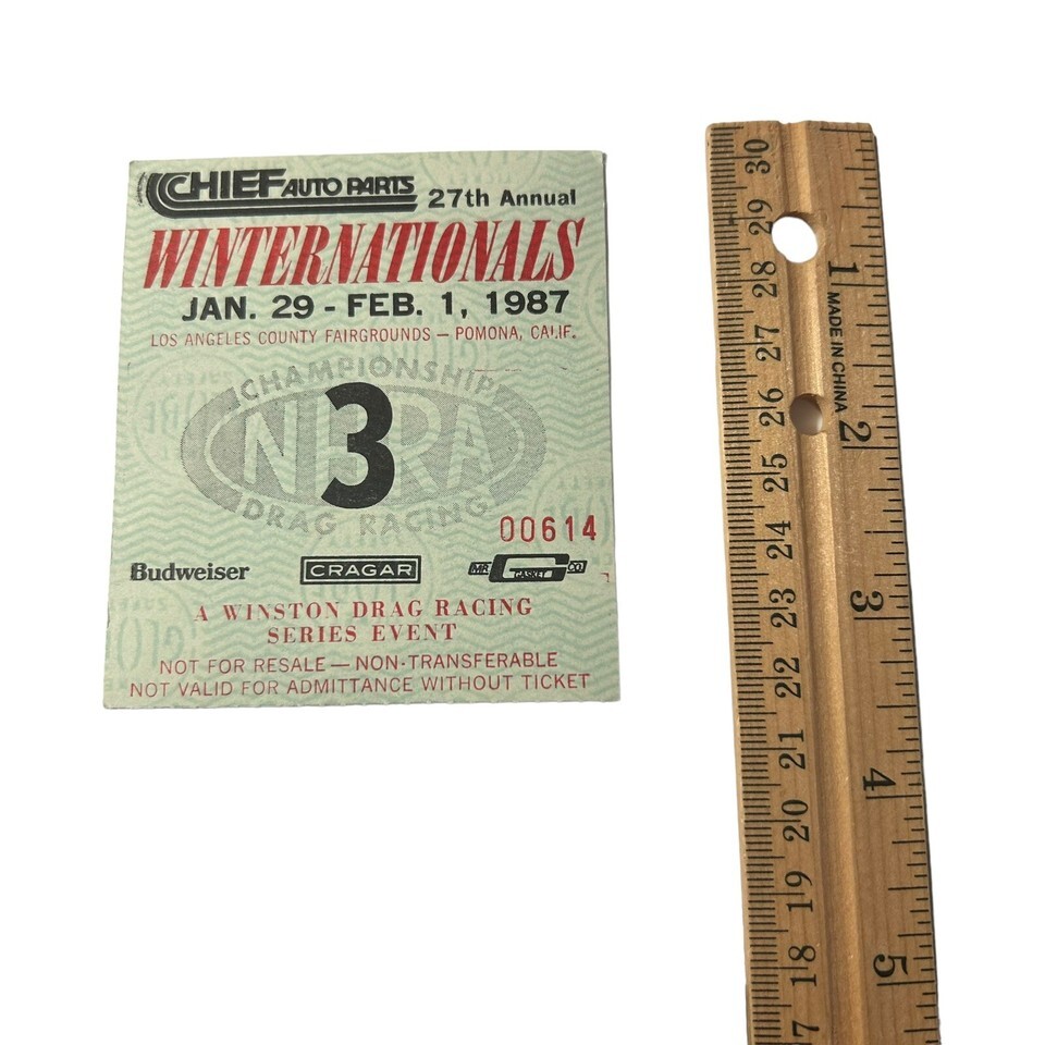 Vtg 80's 1987 NHRA WINTERNATIONALS 3.5"x 3" TICKET STUB HOT ROD CHIEF AUTO PARTS