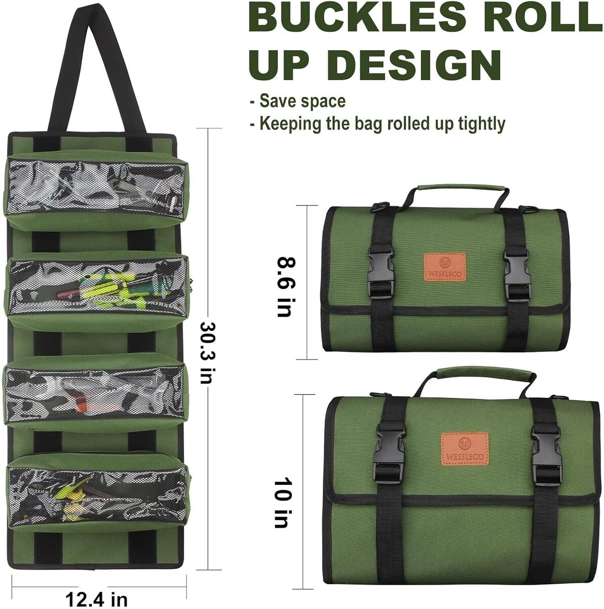 Roll Tool Bag, Green Wrench Roll Organizer, Canvas Roll Up Tool Bag, Multi-Pu...